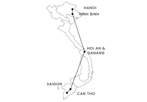 Verdant fields worked by yoked oxen and children splashing in the paddies. Wide tree-lined boulevards with grand state buildings from the French colonial period. A ceaseless tsunami of motorbikes in the thoroughfare and sandwich, noodles, and coffee hawkers litter the pavement. A cruise down a sleepy river past golden yellow buildings with Chinese-tiled roofs and colorful lanterns. These are but a few of the vignettes that make up this 13-day classic journey through Vietnam, a country made up of dramatic landscapes, sublime cuisine, complex cultures, and diverse people. Travel Vietnam from north to south and experience for yourself the allure of this southeast Asian gem.